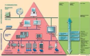 Phân cấp hiện trường: Bao gồm các thiết bị đo lường như cảm biến (sensor); bộ chuyển đổi tín hiệu đo lường (transducer); bộ truyền tín hiệu đo (transmiter)… và các thiết bị chấp hành như động cơ; biến tần và các bộ điều khiển động cơ ( motor, inverter, motor controller… ); van và các bộ điều khiển van (valve, valve controller)…
